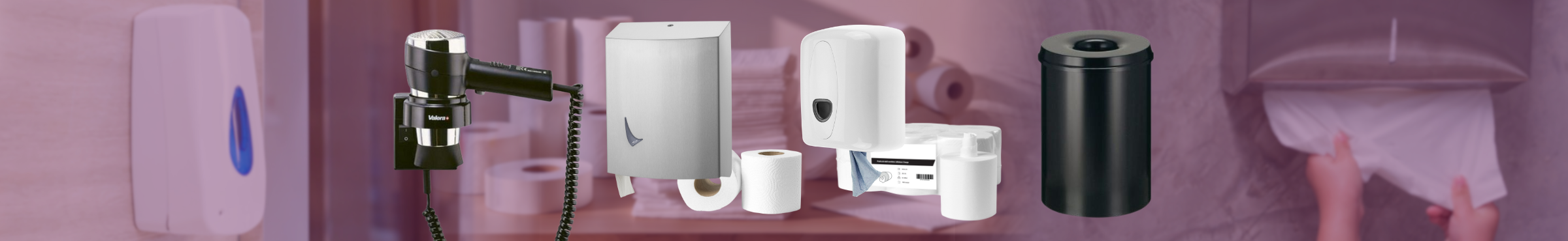 Descubre nuestra gama completa para un entorno sanitario limpio, higiénico y profesionalmente cuidado. Desde dispensadores y soluciones de higiene hasta herramientas prácticas para el mantenimiento diario. Todo lo que necesitas para un espacio sanitario limpio y fácil de usar. Además, todos nuestros productos están disponibles en stock, para que nunca te quedes sin lo que necesitas. También puedes acudir a nosotros para todos los repuestos, como rollos de toalla, papel higiénico, y reemplazo de jabón: siempre disponibles rápidamente y perfectamente compatibles con cada dispensador.